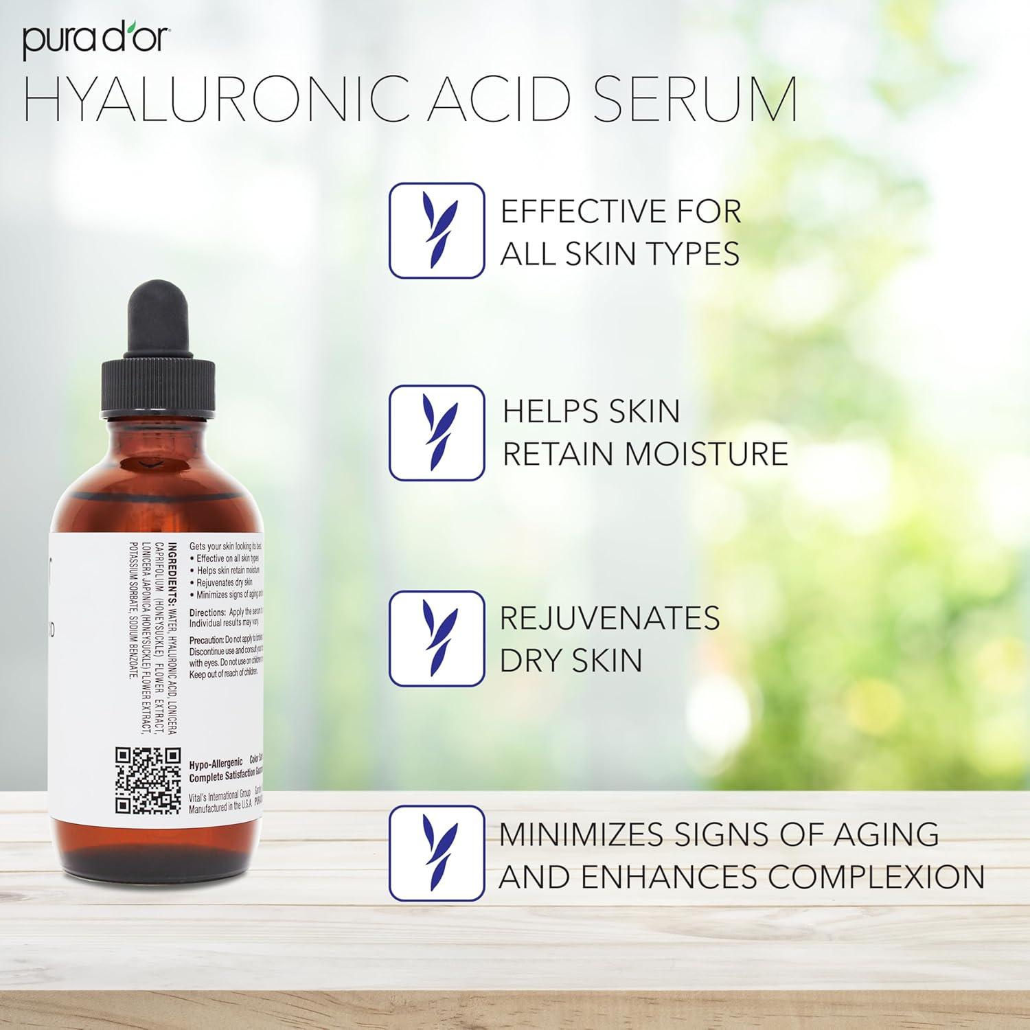 What can Hyaluronic Acid do? Discover the transformative effects of Hyaluronic Acid. This serum is crafted to deliver deep hydration, reduce fine lines, and promote a vibrant complexion.Who will benefit the most from Hyaluronic Acid?Ideal for anyone seeking radiant skin, our serum caters to a diverse audience. Whether you're tackling early signs of aging or aiming for a flawless complexion, PURA D'OR has you covered.Why use it?Elevate your skincare routine with a formula designed for optimal hydration and anti-aging benefits. Our serum is a key player in maintaining skin health and combating the effects of time.How can the everyday person benefit?PURA D'OR Hyaluronic Acid Serum is your daily ally for achieving a youthful glow. From promoting elasticity to supporting collagen production, this serum addresses a range of skincare concerns..This may assist with maintaining radiant skin and a supple complexion. Embrace the power of Hyaluronic Acid for a skincare journey like no other.