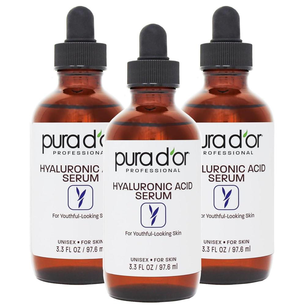 PURA D’OR 3.3 Oz Hyaluronic Acid Serum For Deep Hydration – Anti-Aging, Plumping & Moisturizing Formula For Smooth, Supple Skin – Natural Skincare Boost – Fine Lines & Wrinkle Reducer – Travel Size(3.3 Fl Oz (Pack of 3))