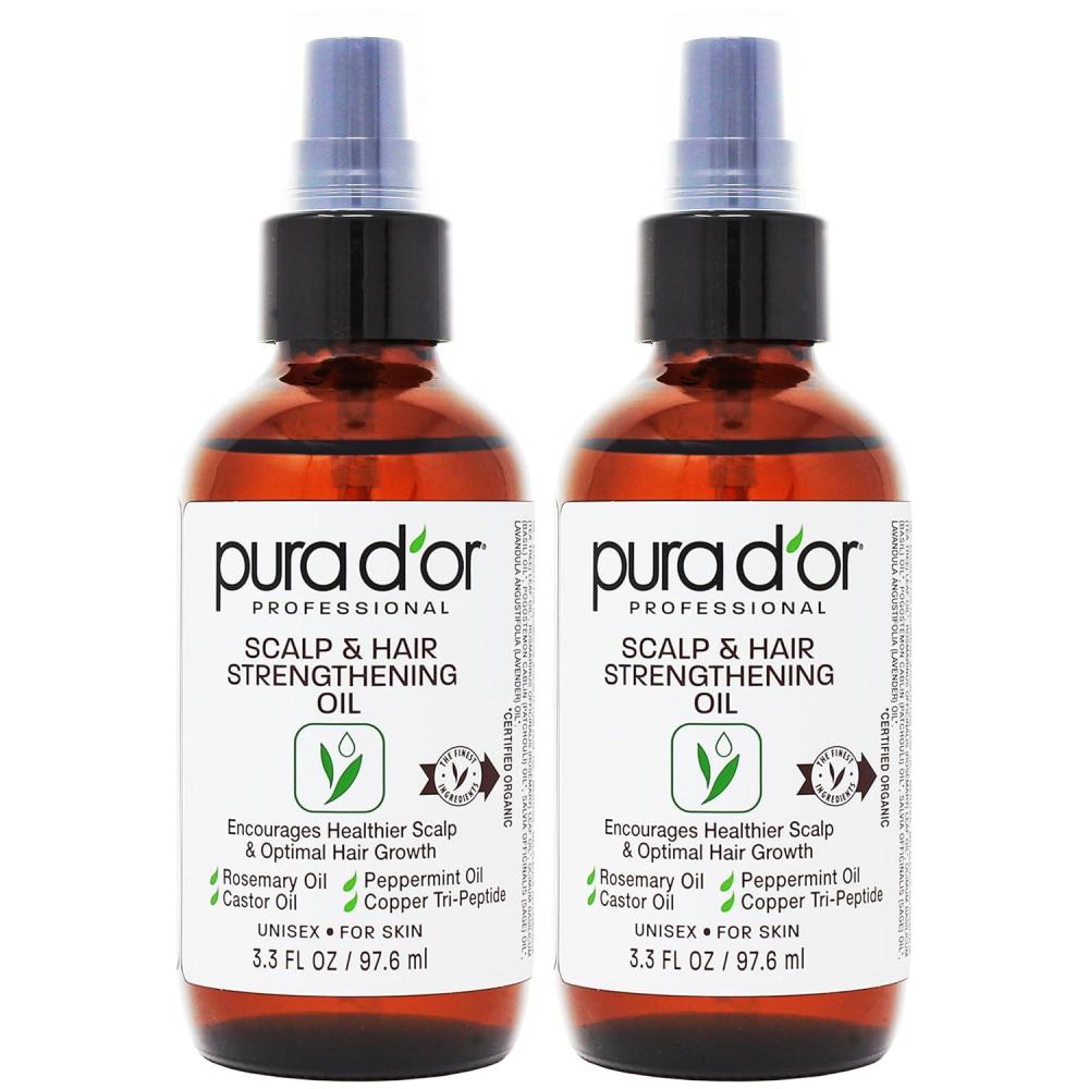 PURA D’OR 3.3 Oz Scalp & Hair Strengthening Oil – Supports Optimal Growth, Reduce Breakage, Nourish Roots for Healthier, Fuller, Thicker Hair – Rosemary, Castor & Peppermint Oil for Stronger Strands | Reduce Breakage, Nourish Roots, Healthier, Fuller, Thicker Hair(3.3 Fl Oz (Pack of 2))