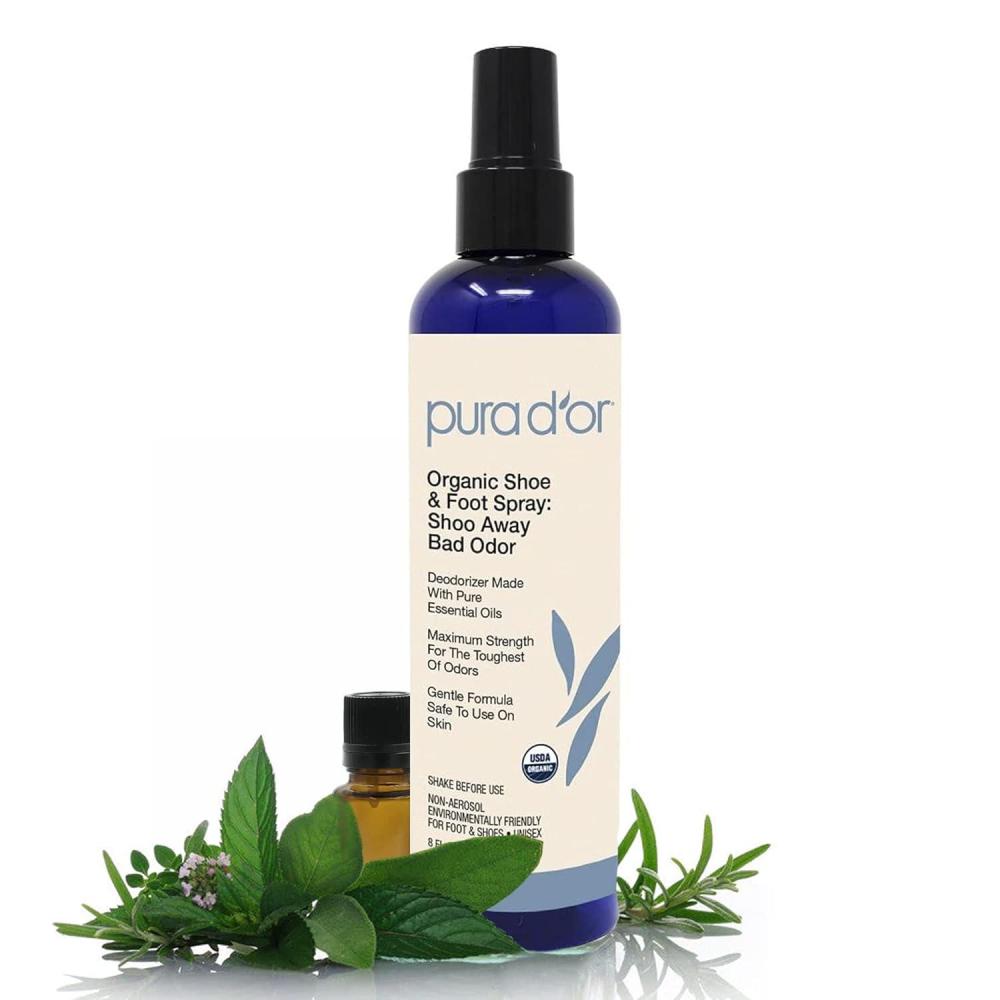 PURA D’OR Organic Shoe & Foot Odor Eliminator Spray (8oz) Deodorizes & Removes Bad Smells with Eucalyptus, Peppermint, Tea Tree, Lemongrass Essential Oil, Maximum Strength (Packaging may vary)